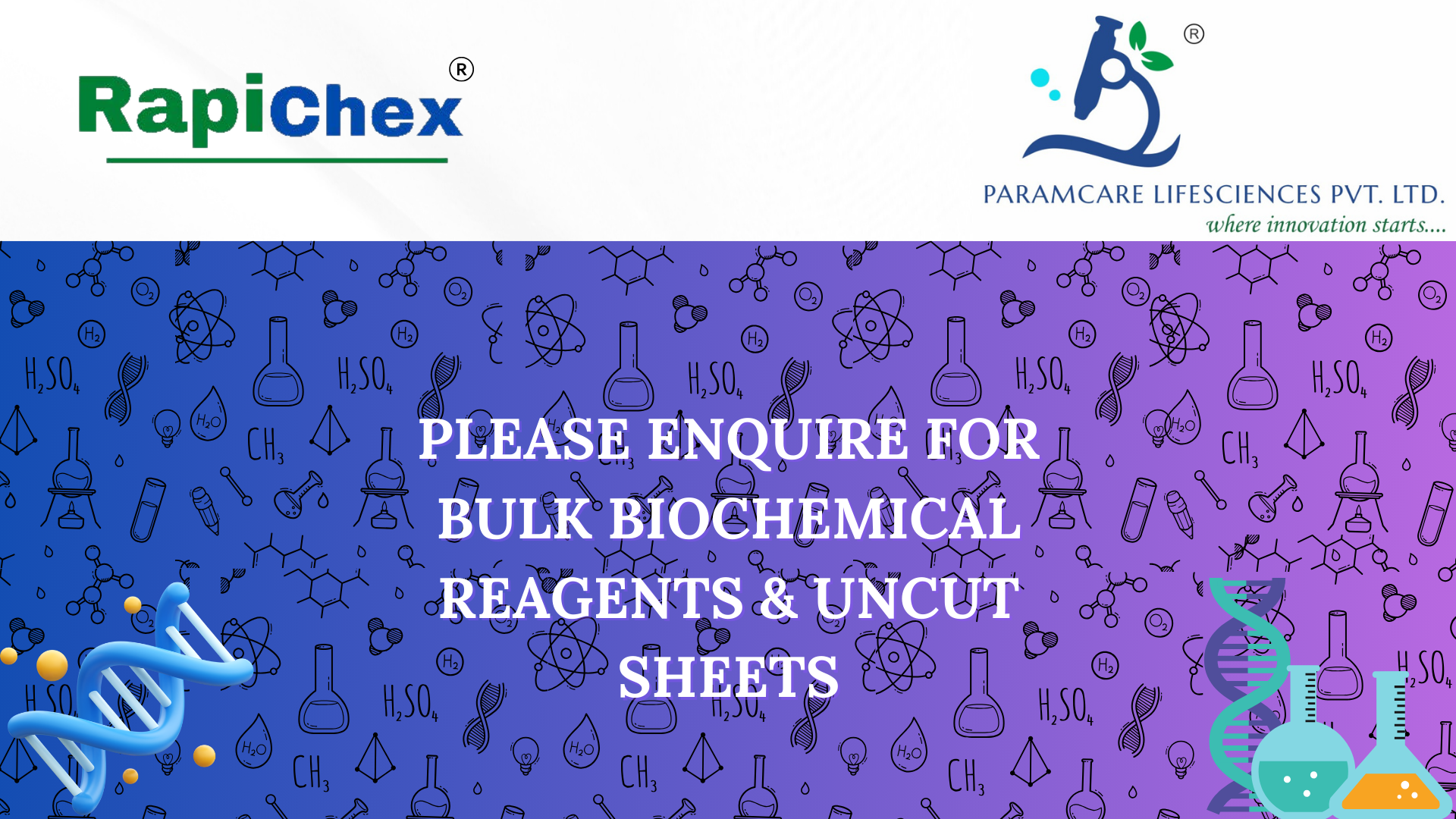 Paramcare Life Sciences Pvt. Ltd having a very strong base of Research & Development of New technology Diagnostic Kits and formed a Research and development Centre in the city of Vapi, Gujarat and a state of the art facility in the year 2022 at Gujarat. Paramcare Life Sciences Pvt Ltd is having business as the supplier of Critical raw materials to Diagnostic Reagents, Immuno Chromatographic Rapid Test, Serology Test & Urine Analysis Strips.